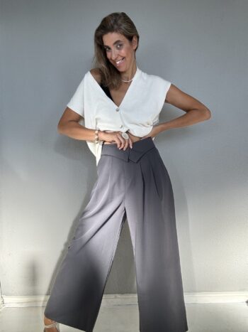 Calças Pantalona Detalhe Assimétrico e Pinças