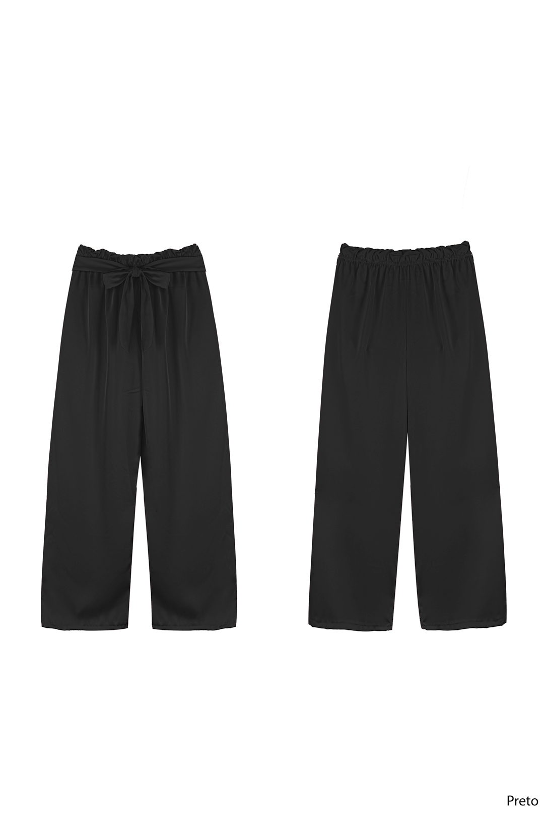 – Calças wide leg acetinadas
